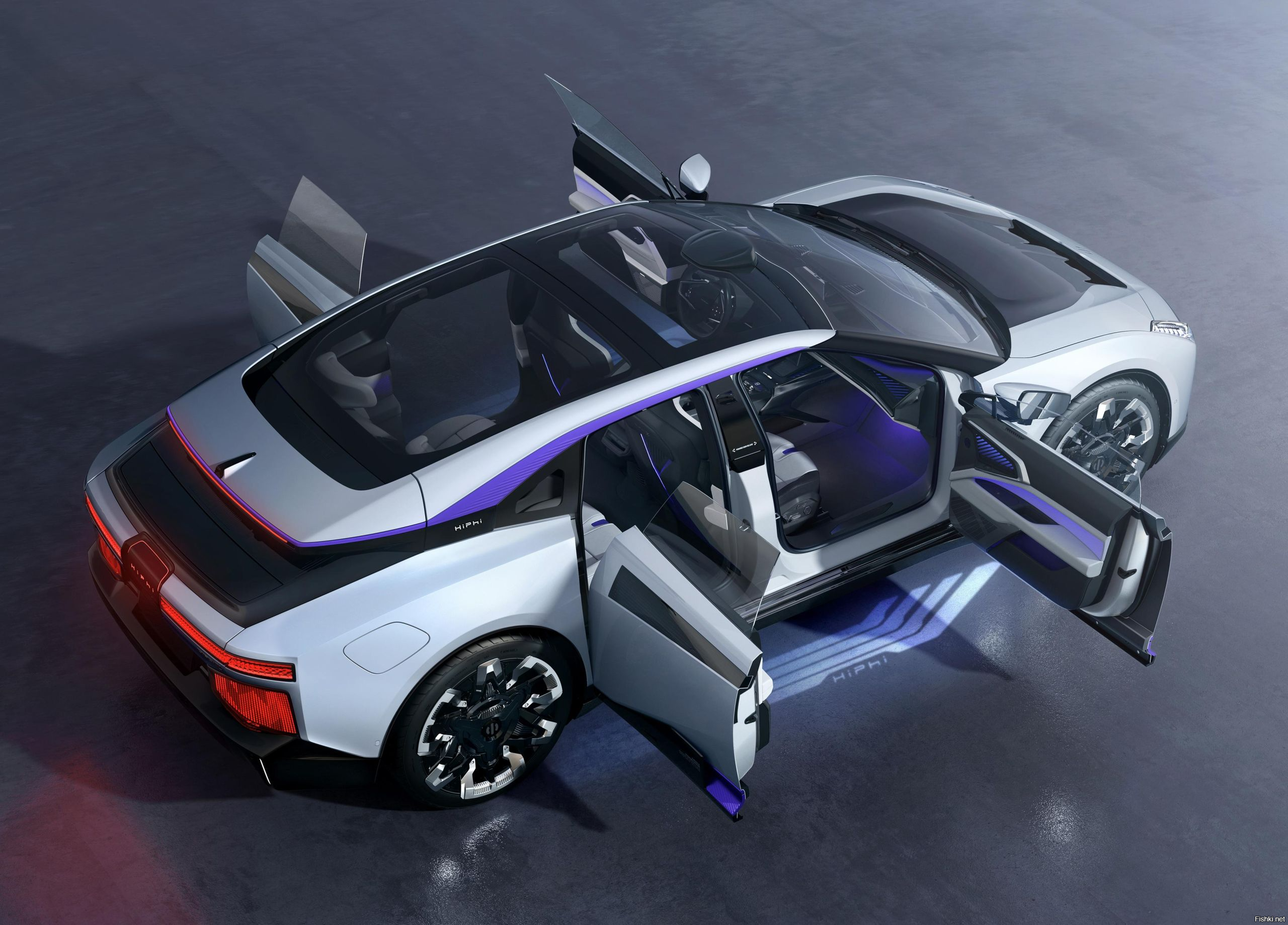 В салоне внимание привлекает необычная центральная консоль с селектором режимов движения в форме автомобиля, а также трио дисплеев, установленных вокруг руля. Наиболее крупный из них служит приборной панелью, а два небольших по бокам отвечают за настройки ездовой электроники, управление микроклиматом и функциями медиакомплекса. Углубление за рулевой колонкой явно намекает на присутствие проекции на лобовое стекло. Ещё один экран виднеется в правой части торпедо перед пассажиром.