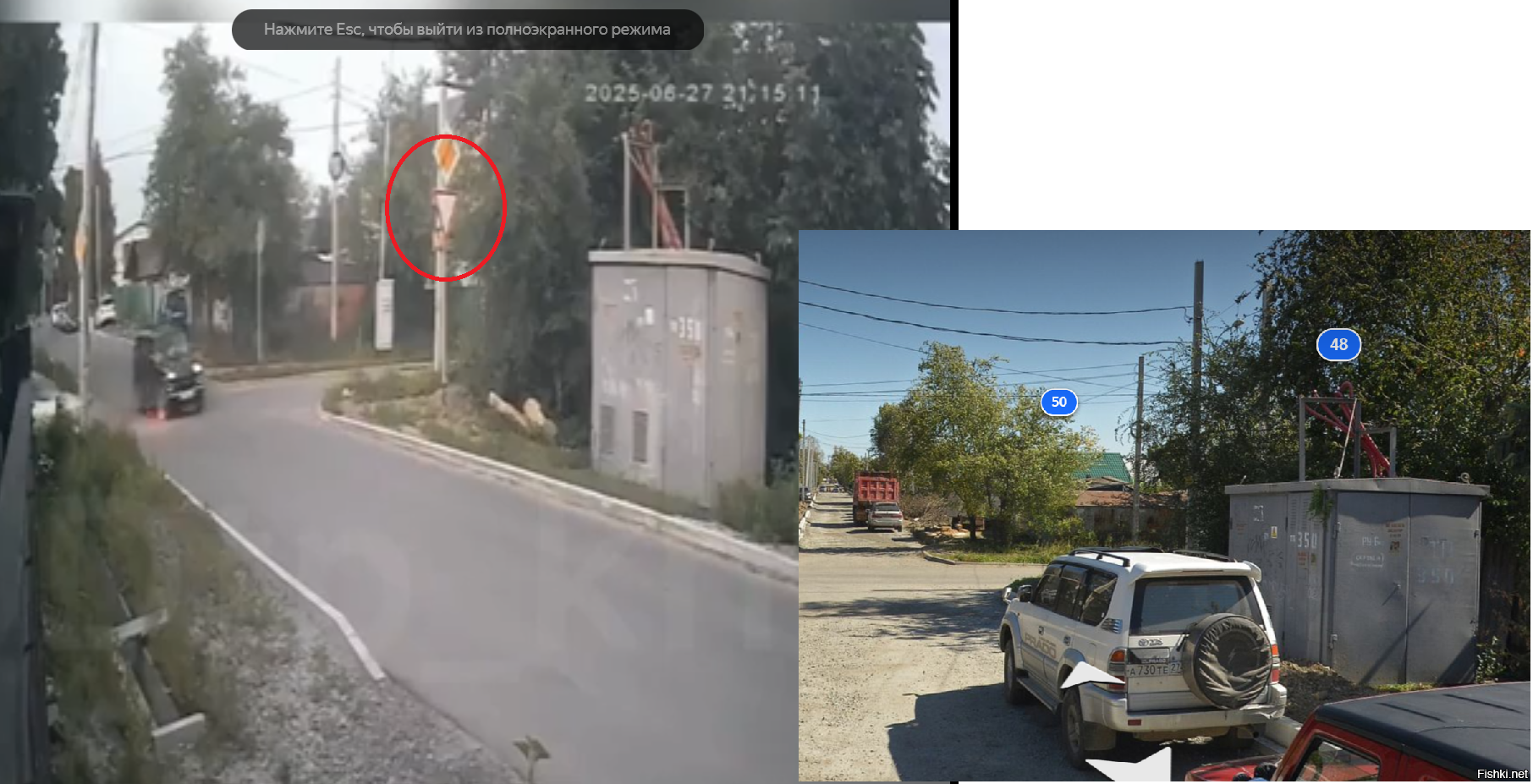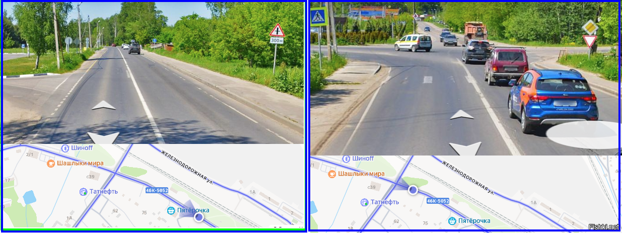 Уточнение: Сначала знак 2.3.1.с расстоянием 300 м до перекрёстка (на фото кроме съезда налево к магазину через метров 15 более ничего нет), потом 2.2. с 2.4. непосредственно перед сами перекрёстком. То, что непосредственно перед перекрёстком - правильно, ибо выезд с Ж\Д переезда справа, но там знака 2.1. нет даже и в помине=)