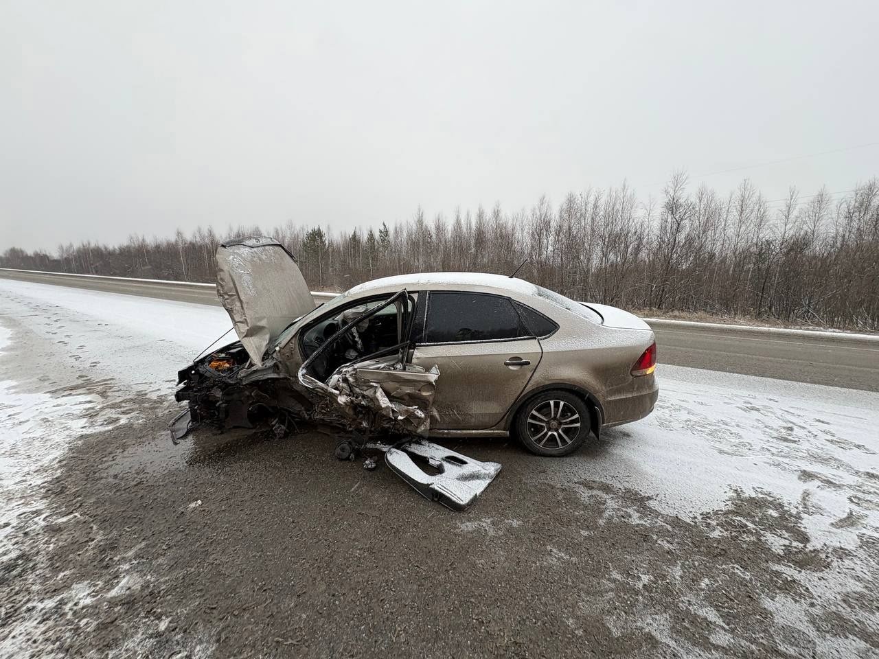 Сегодня утром под Ачинском, на 666-м км трассы Р-255 "Сибирь" столкнулись "Пробокс" и "Поло". Оба водителя в больнице.