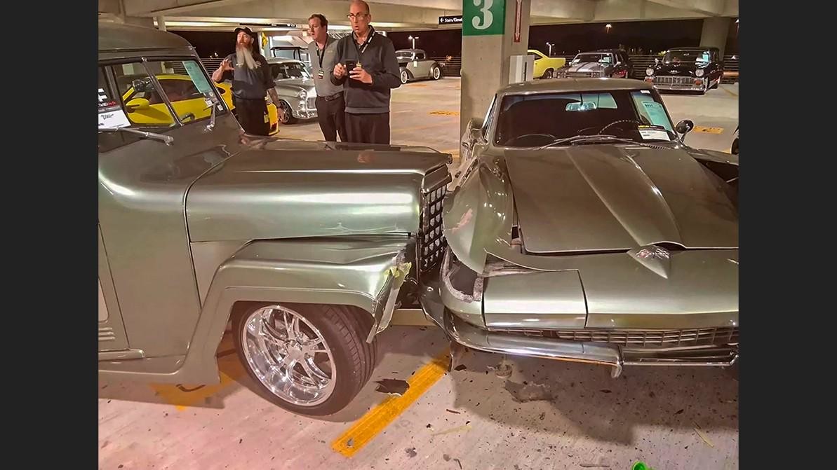 Тем неожиданнее оказалось для окружающих происшествие аукционной сессии в Техасе, когда рестомод Willys 1958 года на скорости с места внезапно врезался в боковину винтажного Corvette C2 1966 года, а тот, в свою очередь, отрикошетил в стоявшие рядом Pontiac Firebird 1977 года и Corvette C7 ZR1.