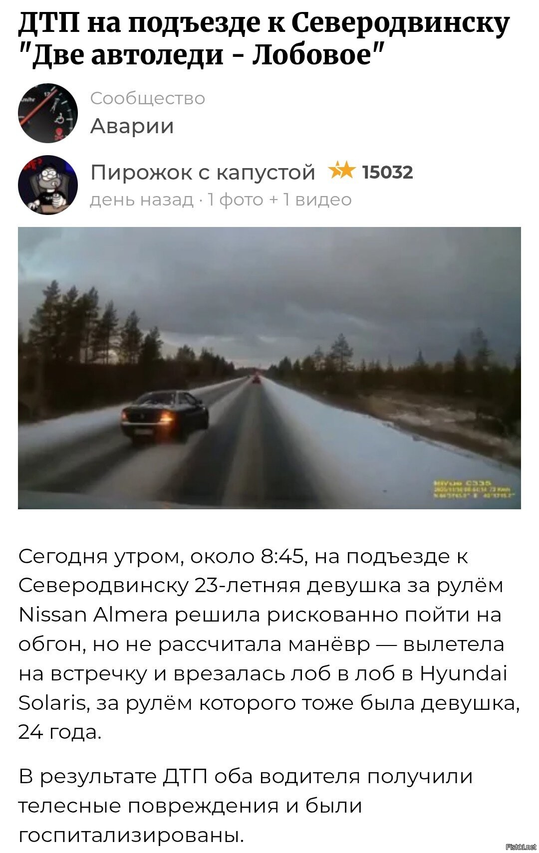 Сегодня утром, около 8:45, на подъезде к Северодвинску 23-летняя девушка за рулём Nissan Almera решила рискованно пойти на обгон, но не рассчитала манёвр — вылетела на встречку и врезалась лоб в...