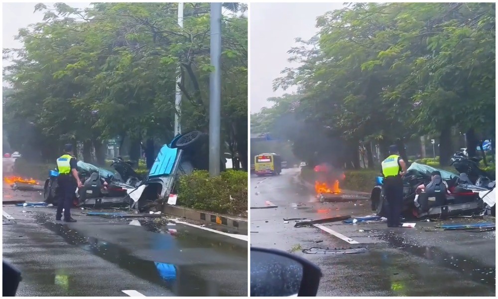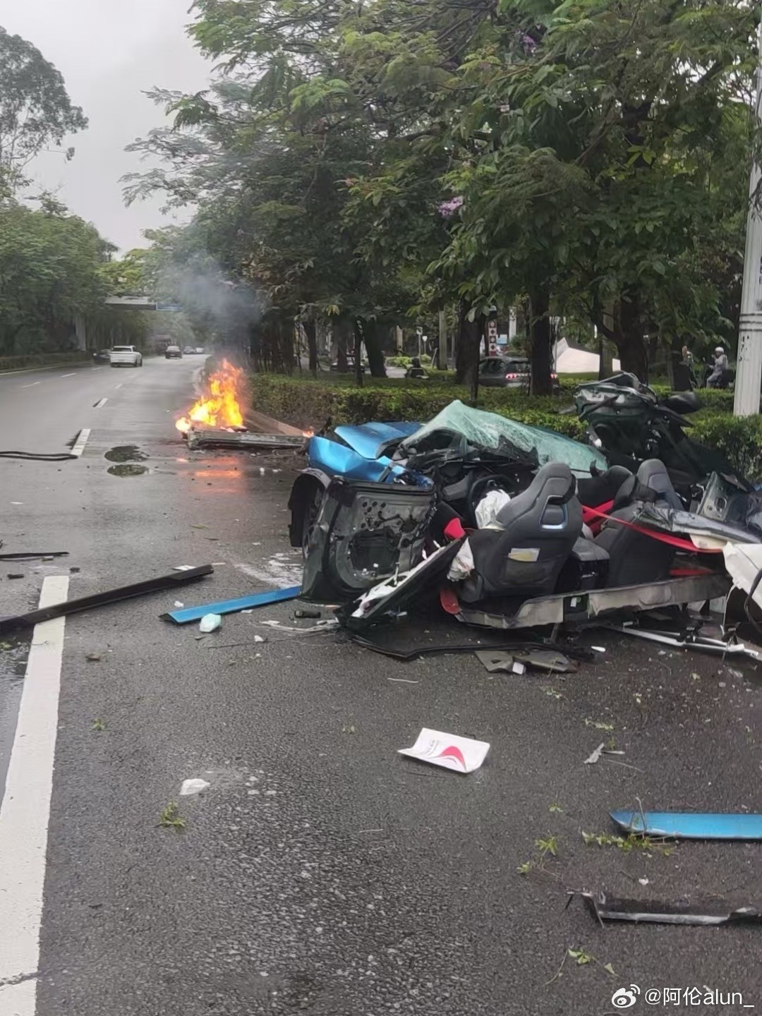 Авария произошла ещё летом в Шэньчжэне, но что-то я её упустил из виду. На мокрой дороге электромобиль "Зикр 001ФР" потерял управление и врезался в столб, в результате чего его разорвало на части. Отвалившийся аккумулятор загорелся. Водитель чудом выжил, получил лишь незначительные царапины и мог общаться со спасателями после аварии. По неподтверждённой информации, скорость на момент столкновения была 152 км/ч.