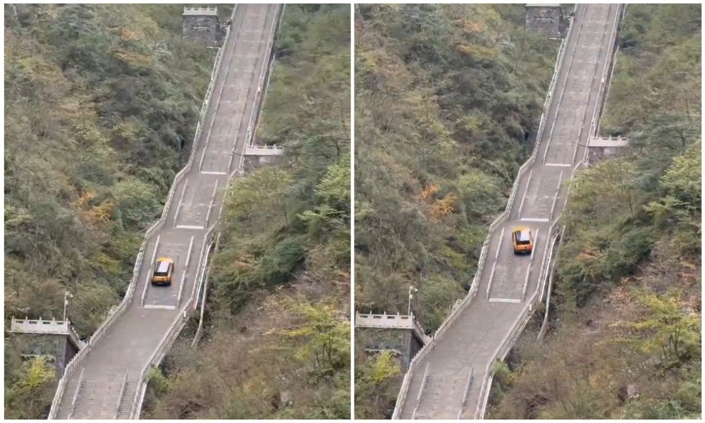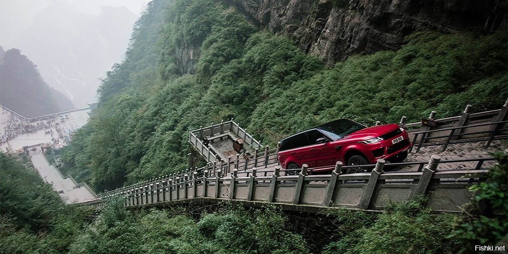 Китайская Chery пыталась снять рекламу своего кроссовера Fengyun X3L, который должен был взобраться по знаменитой «Лестнице в небо» из 999 ступеней. Но практически сразу у машины слетел фиксатор страховочного троса, из-за чего трос намотался на правое колесо. Автомобиль потерял управление, пробил защитную ограду и чуть не упал с горы. Компания принесла официальные извинения за испорченный исторический памятник и пообещала компенсировать восстановление.