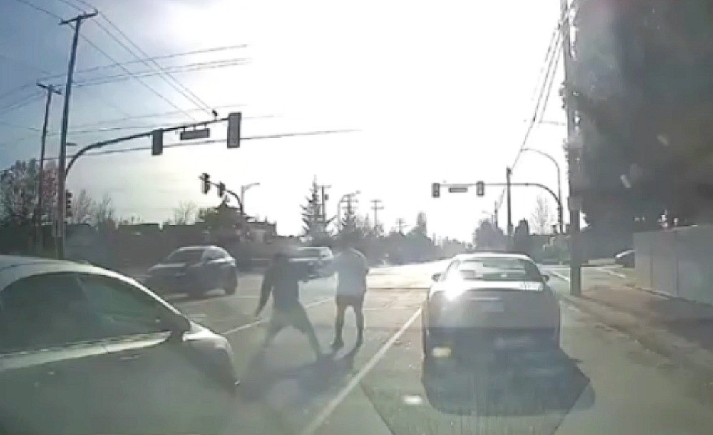 Доподлинно неизвестно из-за чего у водителей разгорелся скандал, но самый борзый сначала получил по лицу, после чего попытался отомстить другим способом, но снова проиграл. Канада.