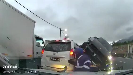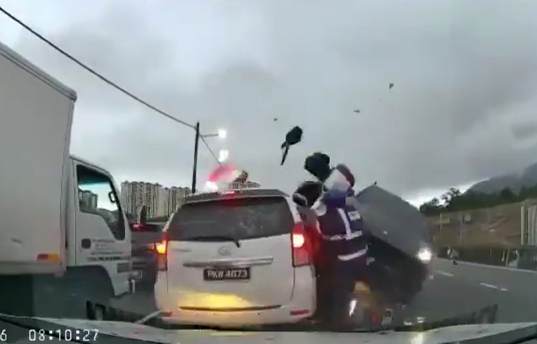 По данным полиции, водитель автомобиля "Порше", пытался избежать столкновения с другим мотоциклом, выехавшим на его полосу, но потерял управление и сам выехал на встречную полосу. Сообщается, что он не пользовался телефоном во время движения и не находился под воздействием алкоголя или наркотиков. Два мотоциклиста получили лёгкие травмы. Джорджтаун, Малайзия.