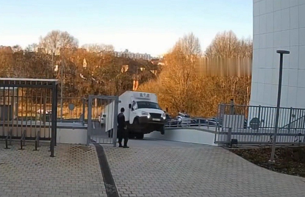 В Казани на улице Азата Аббасова грузовик "Валдай" при заезде на территорию одного из ЖК встал на задние колёса и чуть не задавил сотрудника местного ЖК.