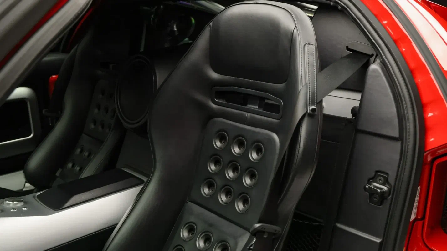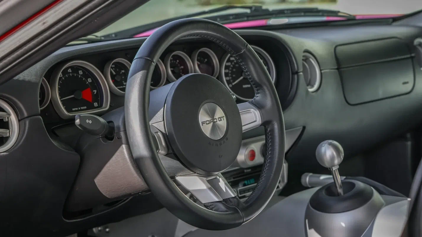 Выставленный на продажу экземпляр Ford GT окрашен в красный цвет и лишён практически обязательных для модели продольных белых полос на кузове. Интерьер отделан чёрной кожей и алюминием. «Ковши» Sparco базируются на каркасе из углепластика.