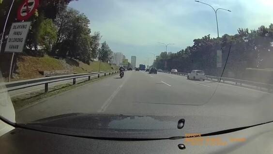 Мотоциклист выглядит как камикадзе. На что отвлёкся и по какой причине произошло ДТП не сообщается. Малайзия.