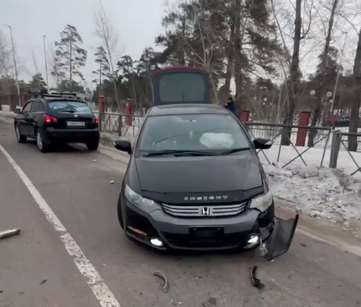 На Тобольской улице в Улан-Удэ водитель автомобиля "Хонда Инсайт" столкнулся со встречным автомобилем "Хонда ЦРВ". Как утверждает виновник - педаль газа зацепилась за коврик, что и привело к аварии.