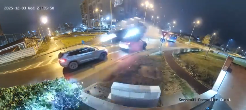 Новый «Форсаж» прямиком из Румынии: мужик на Мерседесе перелетел через 2 машины и едва не снёс камеру видеонаблюдения, которая засняла эпичный прыжок.