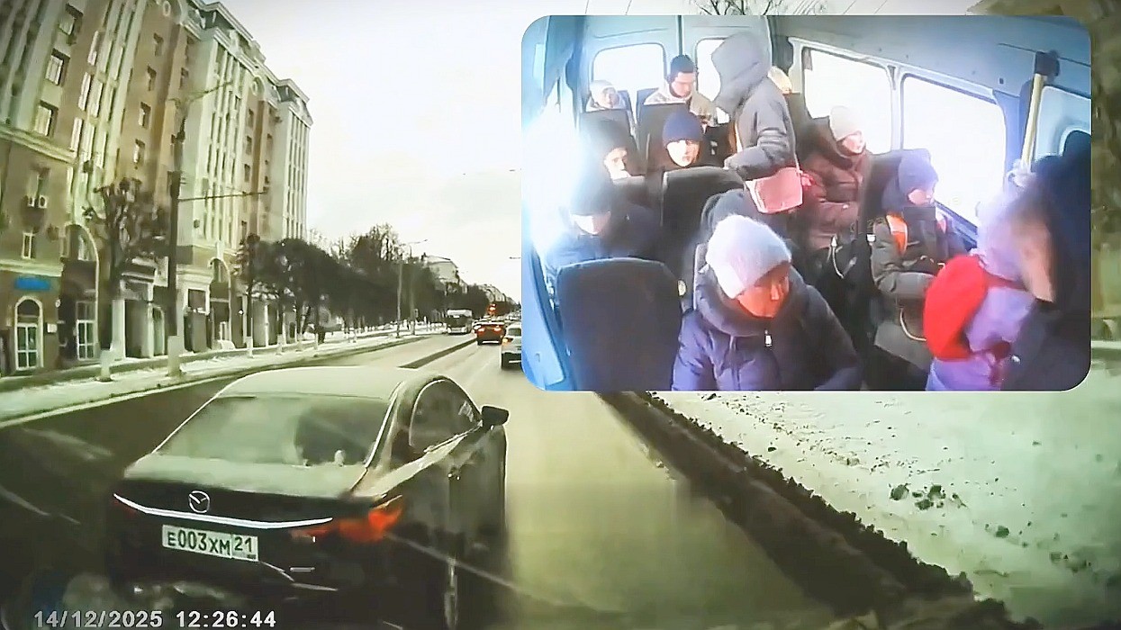В Чебоксарах водитель "Мазды" обиделся и решил проучить маршрутку с пассажирами. Водитель автобуса не стал рисковать их жизнью и здоровьем, и въехал в легковушку. К сожалению, видео заканчивается внезапно и чем закончилась история не сообщается.