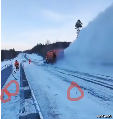 кусок снега от отбойника отскочил