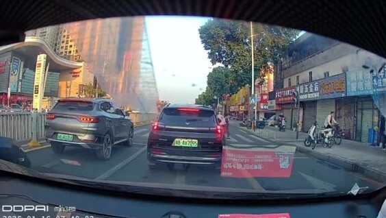 Горит красный светофор для пешеходов, машины поехали, что же могло пойти не так? Шэньчжэнь, Китай.