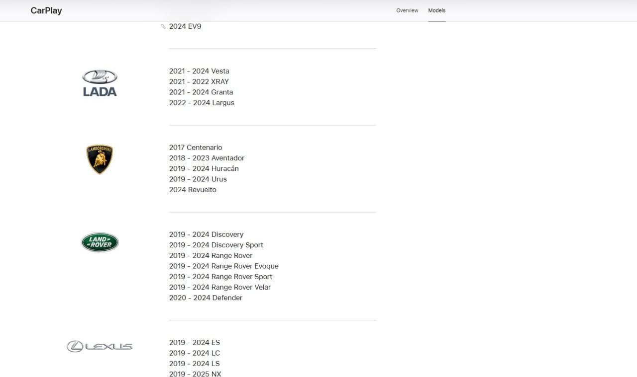 Компания Apple внесла автомобили Lada в официальный список машин, поддерживающих систему Apple CarPlay, говорится на официальном сайте американской компании.