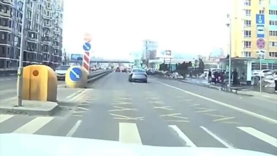 К счастью, обошлось без сбитых пешеходов и то только потому, что они сами успели разбежаться от этого водителя на "Хюндае Санта Фе".