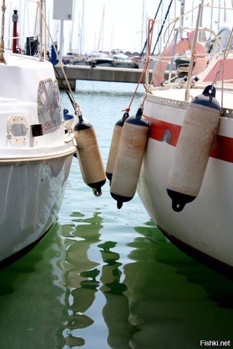 Когда швартуешься лагом в волнение к внешнему (аварийному) пирсу, то эти заразы имеют свойство выскакивать наверх. И тогда борт яхты начинает притираться о причал.. Звук этого скрипа пробирает, словно напильником по зубам. И в мыслях улетают в никуда две тысячи евро депозита. . .