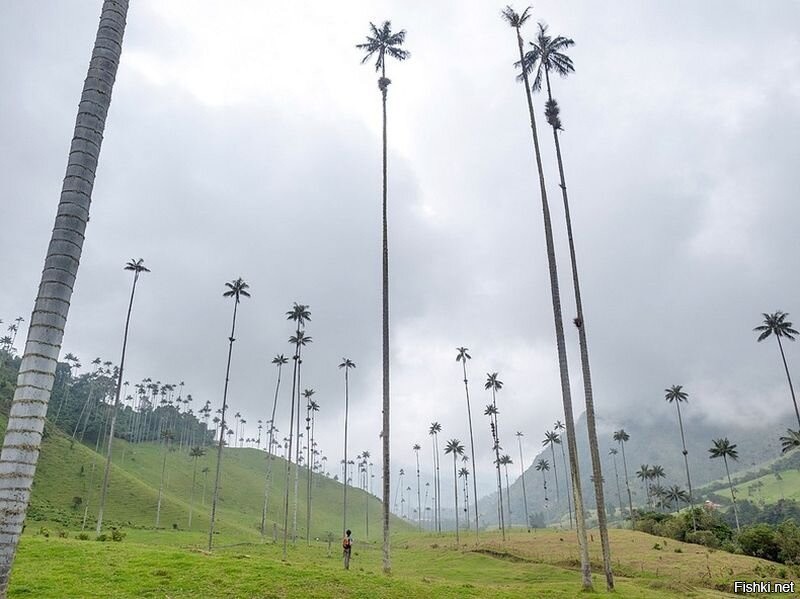 КИНДИОЙСКАЯ ВОСКОВАЯ ПАЛЬМА : Это растение является национальным деревом Колумбии и по праву считается самой высокой пальмой на планете. Высокогорная долина Кокора – единственное место, где оно произрастает. Пальмы здесь растут на высоте от 1,8 до 2,4 тысяч метров над уровнем моря. Киндиойская восковая пальма достигает 50 метров в высоту