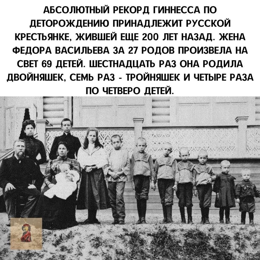 Рожала она, соответственно, 27 раз, итого – 69 детей.
