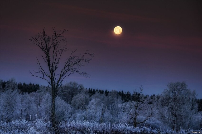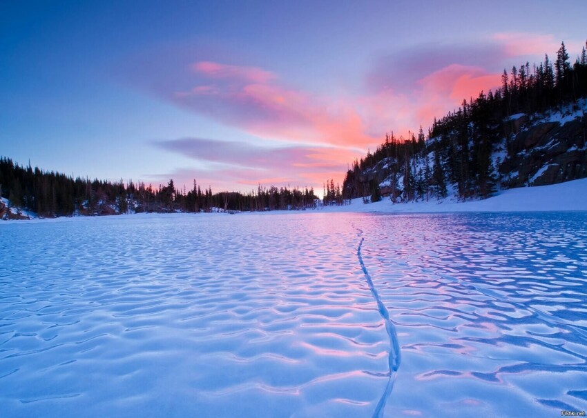 Вечернее небо розовое, даже багряное — будет снегопад.
