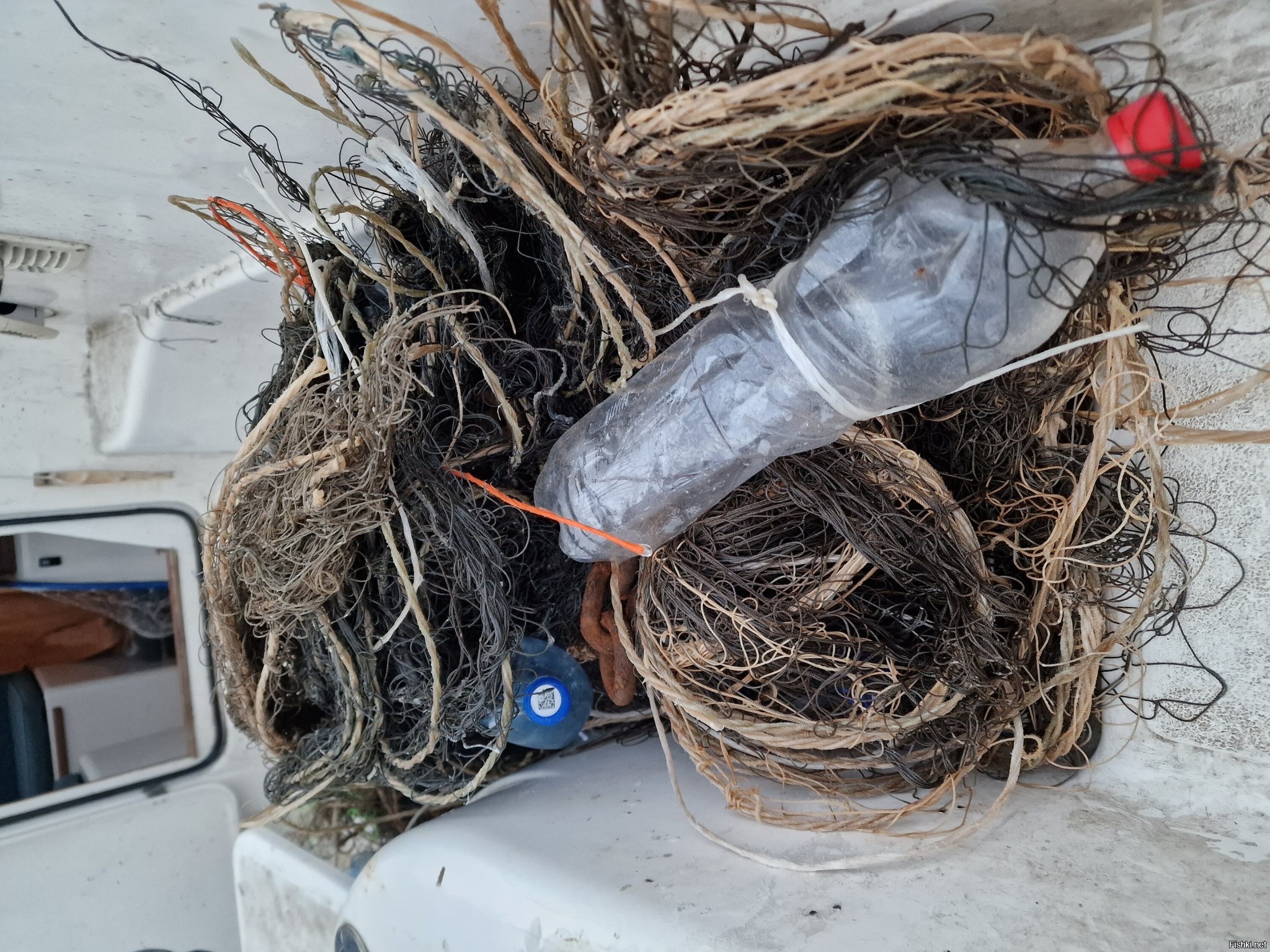 Нет, я успел вырубить движок, это уже, к сожалению, автоматическое действие поздней осенью в Онеге- как заканчивают ходить сухогрузы, баржи и прочий коммерческий флот, вылезают эти уроды с сетями. Их же не видно нифига, пока вритык не подойдёшь, когда манёвры уже бесполезны. А ходом кто воткнется- вообще катер утопить можно....