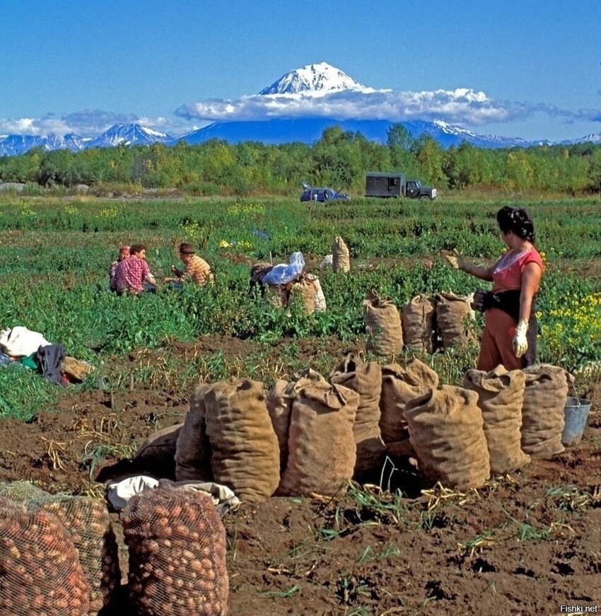 Гугл рулит. КАМЧАТКА, РОССИЯ - 1992/01/01: Россия, Камчатка, под Петропавловском, люди собирают картофель с частных полей. (Фото Вольфганга Келера)
