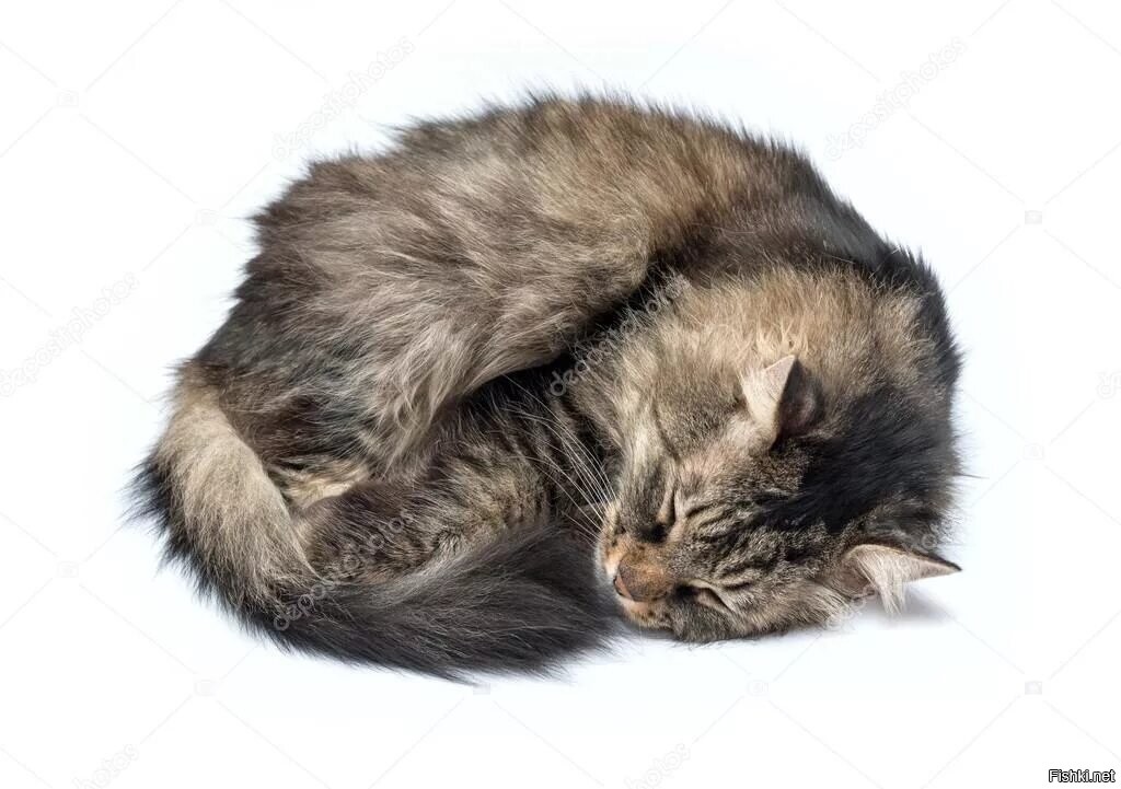 Кошка сворачивается в клубок, во сне мордочку прячет, прикрывая ее лапкой - днем может проглянуть солнышко.