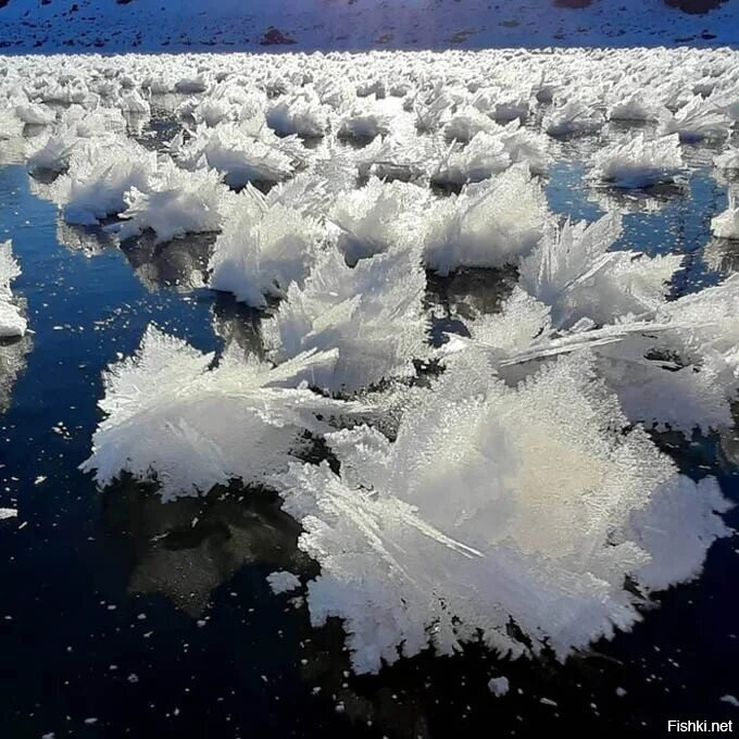 Я один раз в жизни такое видела, до сих пор забыть не могу. В 1 классе на НГ родители подарили мне коньки, мы пошли кататься на лиман. Помню гладкий лёд и вот такие на нем "пёрышки". Было так удивительно красиво)