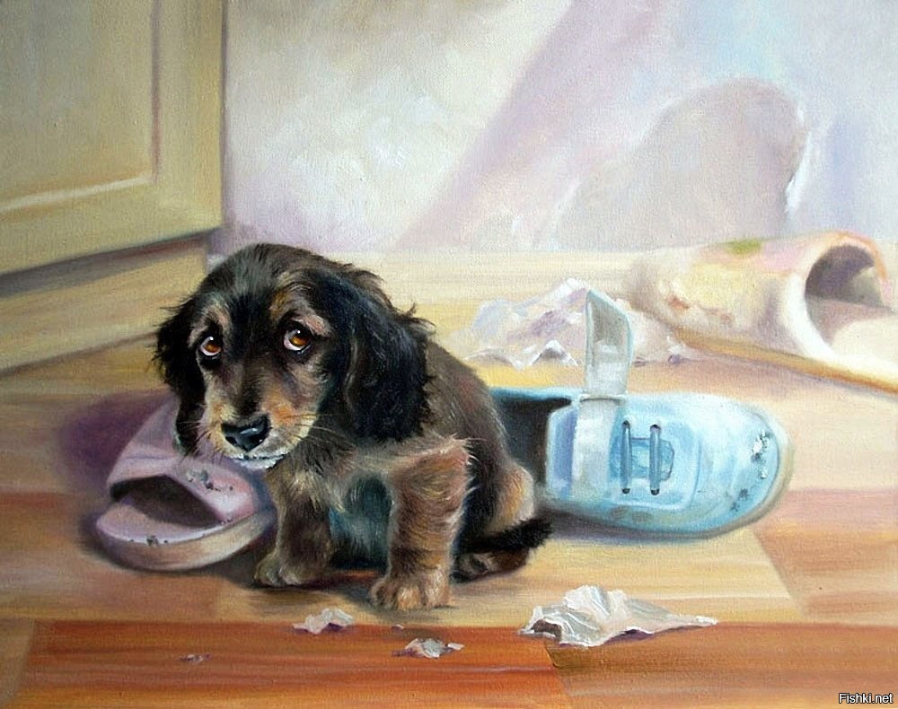 Собака тупая. Она поняла, что нельзя грызть тапок, когда его тебе дают. А когда не дают - можно.