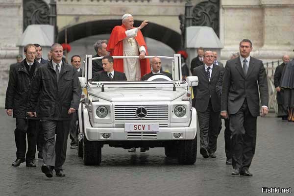 «Простите, Ваше Святейшество», — говорит водитель. «Пожалуйста, займите своё место, чтобы мы могли поехать?»