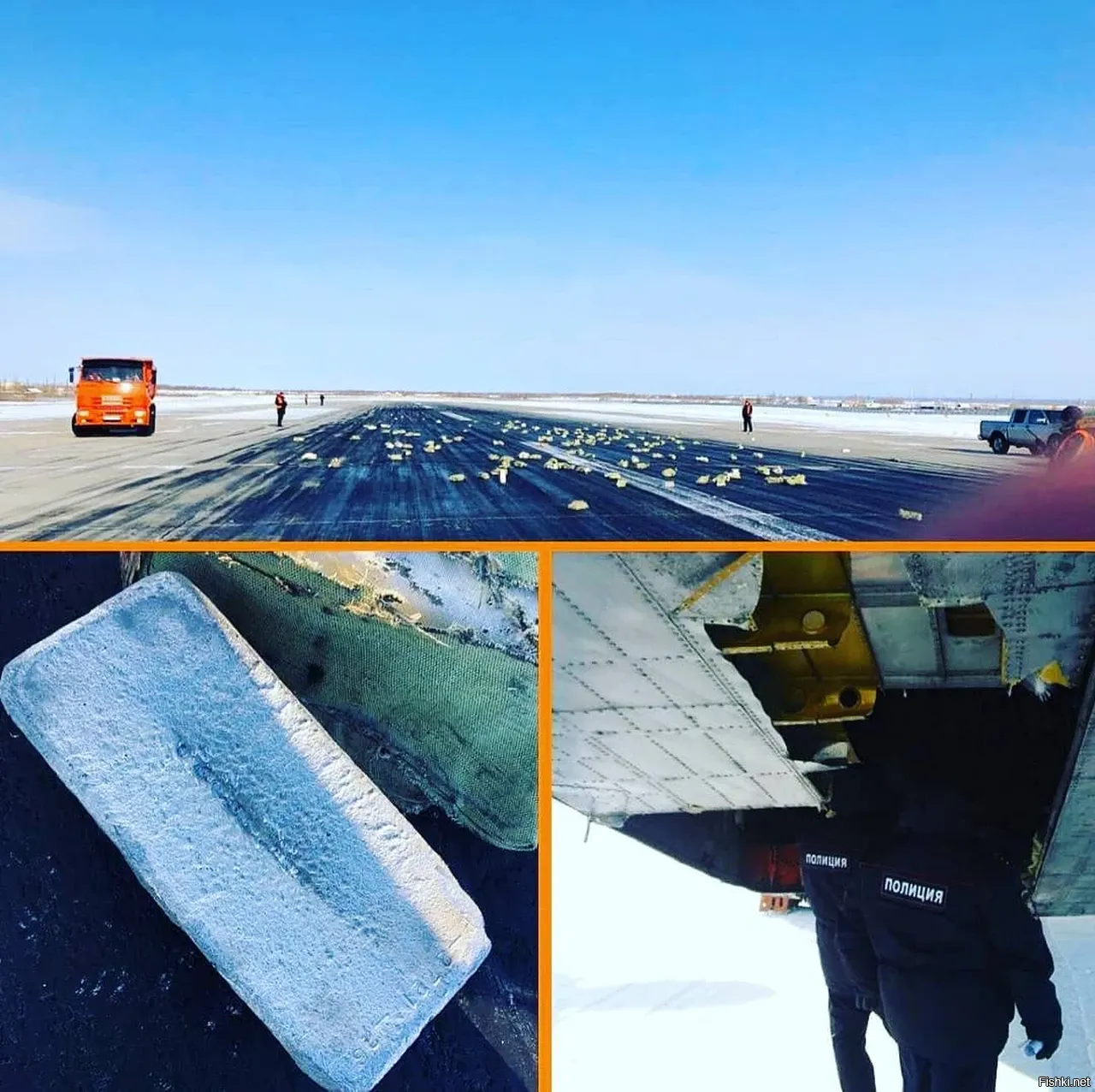 "При взлёте с аэродрома в Якутии, у грузового Ан-12, ветер сорвал одну из створок люка, и из него выпало почти 3,5 тонны драгоценного металла сплава золота и серебра. Слитки рассыпались по взлётной полосе и окрестным полям, а также по территории авторынка, расположенного рядом с аэропортом. При этом никто не пострадал".