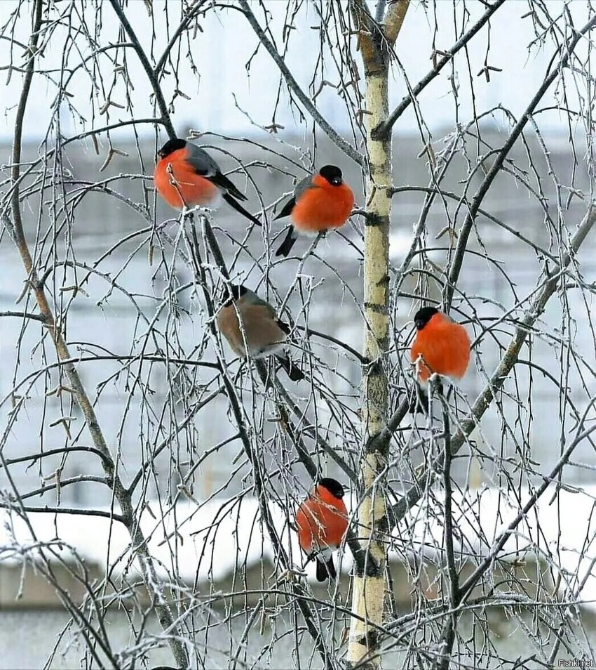 Красные снегири-это мальчики, а серая-это девочка!!!