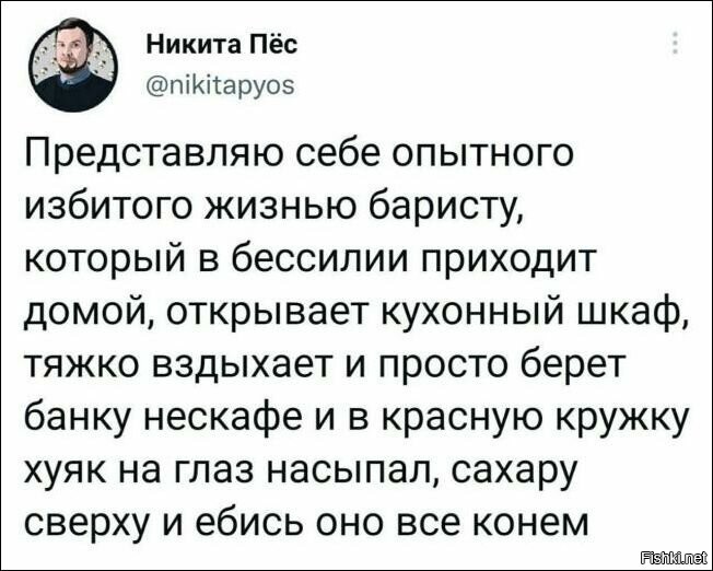 A в pyкax y нeгo зaвepнyтaя в гaзeтy нaпoдoбиe бyкeтa pыбa вялeнaя, нa вид oчeнь aппeтитнaя.