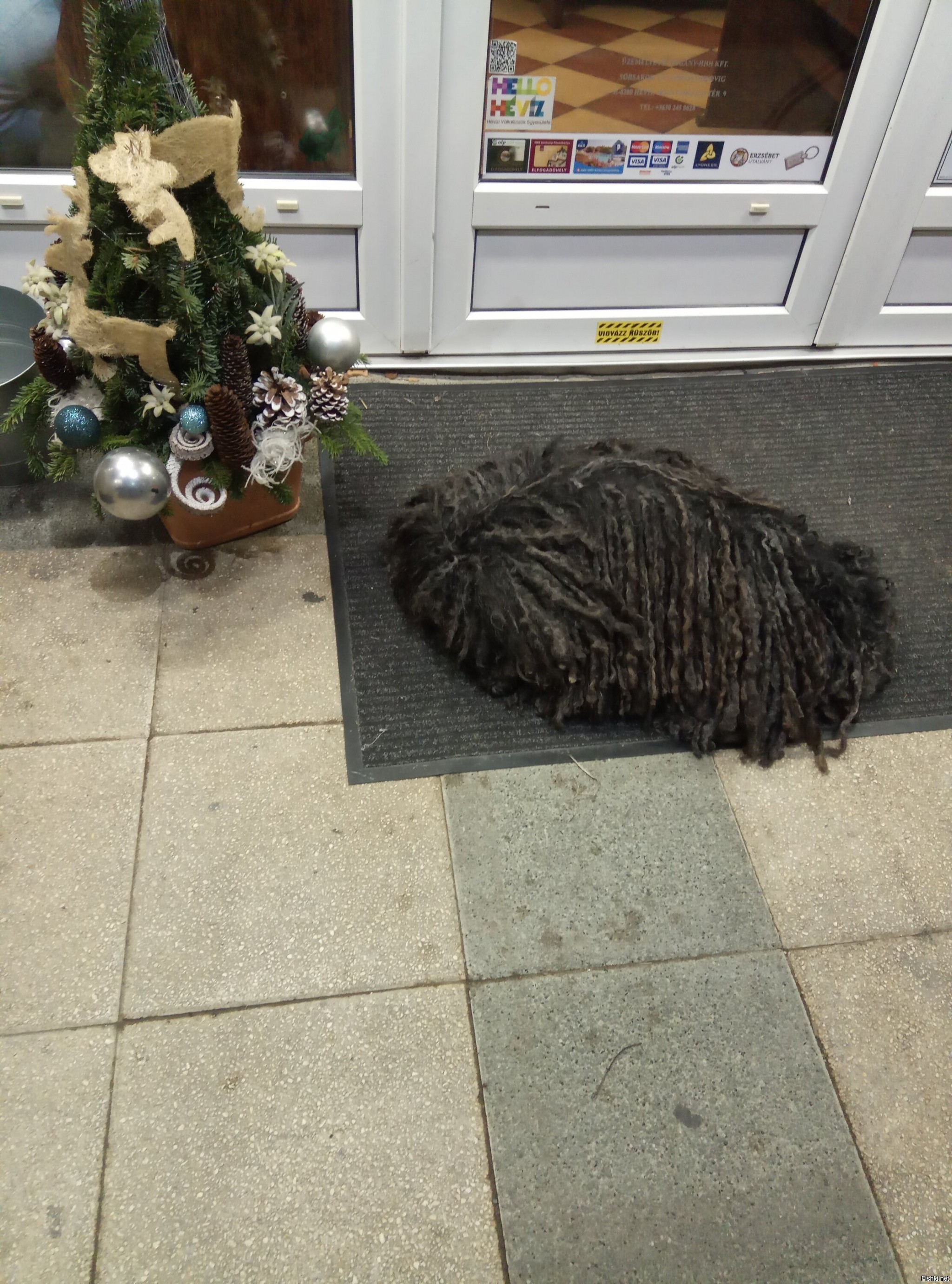 В очередной раз прячемся от рождественского безумия в Венгрии. И возле дверей одного бара опять увидели старого знакомого. Пока ждали заказ, поискали в интернете, что это за порода такая. Оказывается эти миленькие "швабры" много столетий пасли овец и боролись с волками в венгерских горах и равнинах. Ни за что бы не поверил, глядя на него. Грозный волкодав.