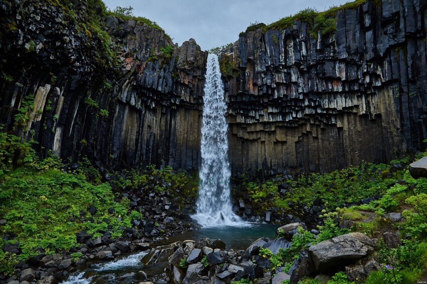 Свартифосс, находится в Скафтафетле, национальный парк "Ватнайёкюдль".