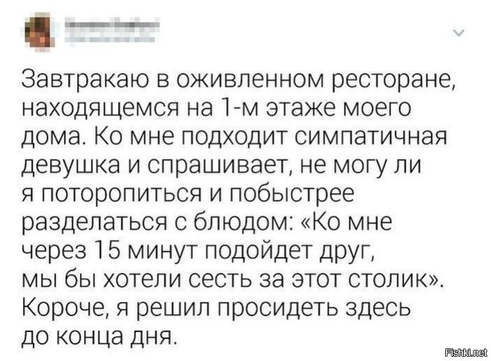 А перед закрытием сообщил девушке: "Я и завтра с утра приду!".