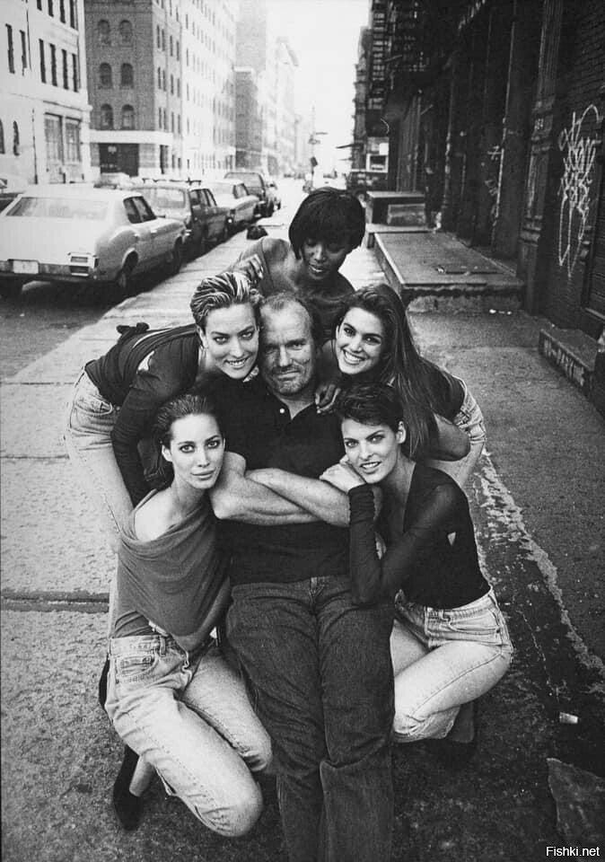На фото: Питер Линдберг, Кристи Тарлингтон, Татьяна Патиц, Наоми Кэмпбелл, Синди Кроуфорд и Линда Евангелиста, 1990 год