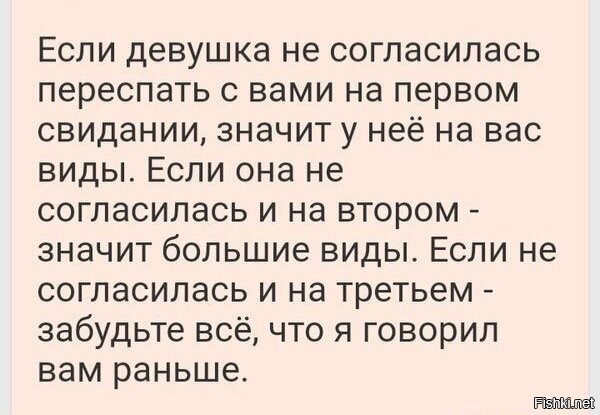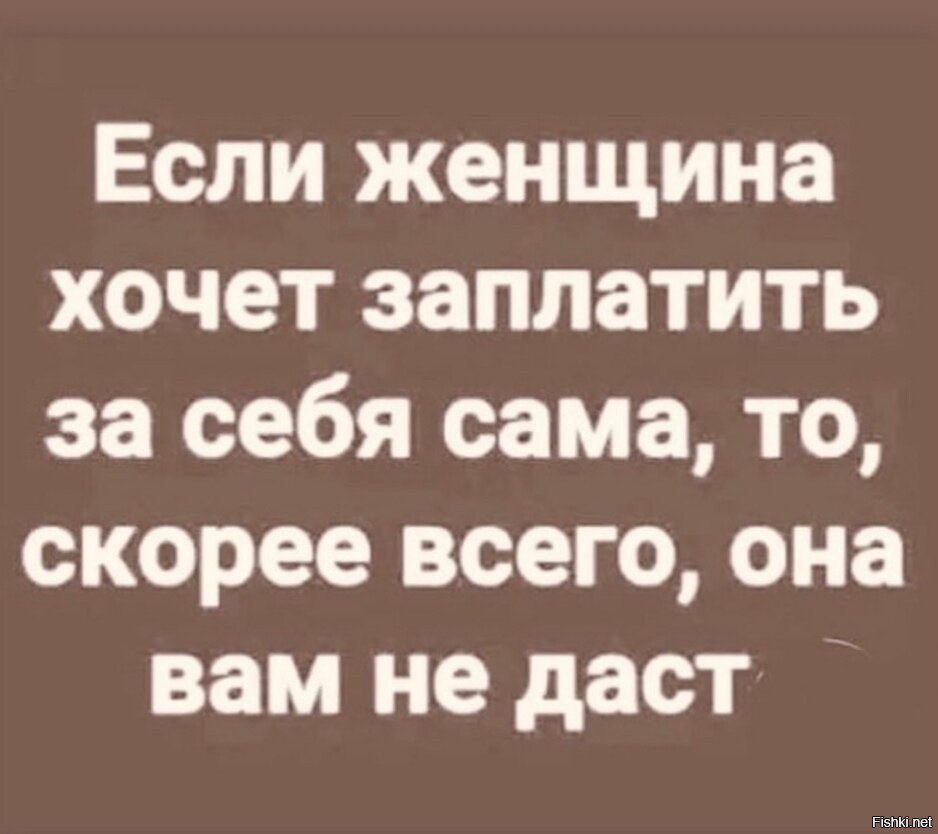 Если женщина говорит: "Ну его, этот ресторан. Пошли лучше ко мне. Я тебя таким обедом накормлю." То именно вам придётся ей давать.
