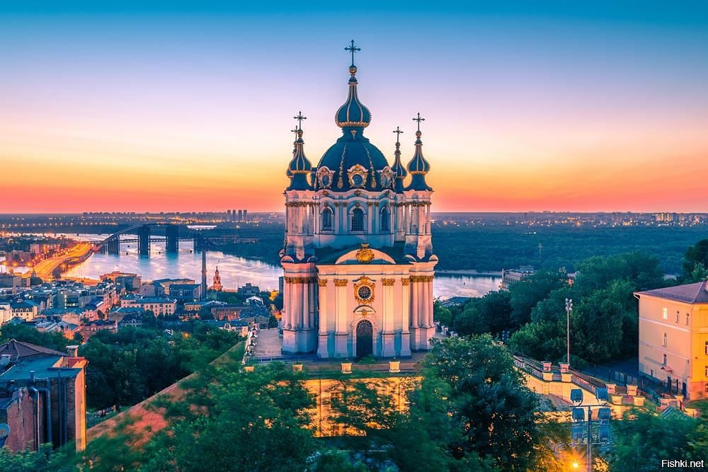 Православный храм в честь апостола Андрея Первозванного. Построен в стиле елизаветинского барокко по проекту Б. Ф. Растрелли в 1747-1753 годах на Андреевской горе. Храм расположен на крутом правом берегу Днепра, над исторической частью города - Подолом. Вниз от Андреевской церкви идёт Андреевский спуск, соединяющий верхний город с нижним.