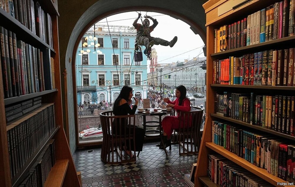 В Питере на Невском нравится мне книжный магазин. Как приезжаю - специально туда иду, обязательно в нём пару книг беру и любуюсь видом из окна с кофе...