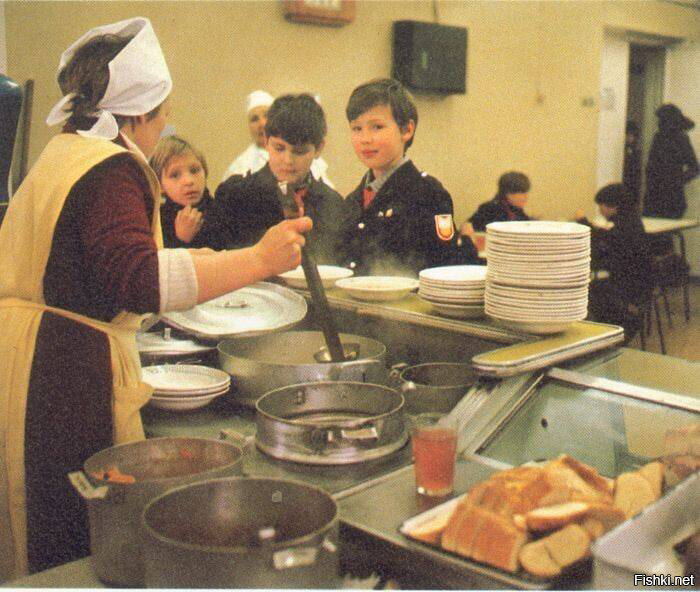 В школе, когда мы заходили на обед, всё уже стояло на столах.