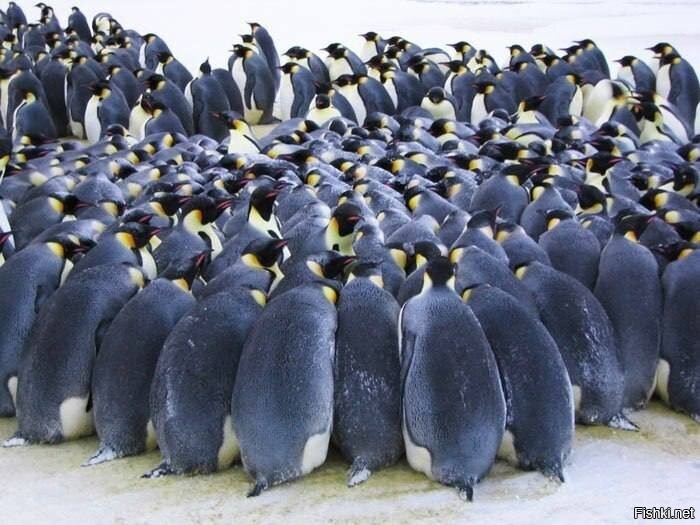 Когда мороз опускается до - 40, и ветер дует со скоростью 40 метров в секунду, пингвины собираются в круг спиной к ветру, и по кругу потихоньку движутся. Самые разогретые из середины круга меняются с замёрзшими по краю, и так до тех пор, пока не закончится буря. И только благодаря заботе каждого о каждом, можно выжить в суровом климате и победить лютый мороз …