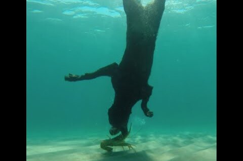 Дрессировщик собак Алекс Шульц обучил лабрадора нырять и доставать лобстеров. Тренировки начинались в бассейне с игрушками на дне.