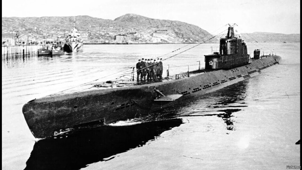 Ближний в кадре — командир подлодки Герой Советского Союза капитан 2-го ранга Николай Александрович Лунин (1907—1970). Справа налево (от капитана): военком Сергей Александрович Лысов, командир минно-артиллерийской части БЧ-2-3 Владимир Леонардович Ужаровский.