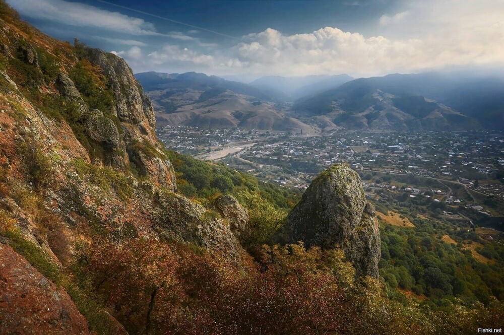 Вид с горы Шоан. Карачаевск, Карачаево-Черкесия, Россия, северное полушарие, планета Земля.