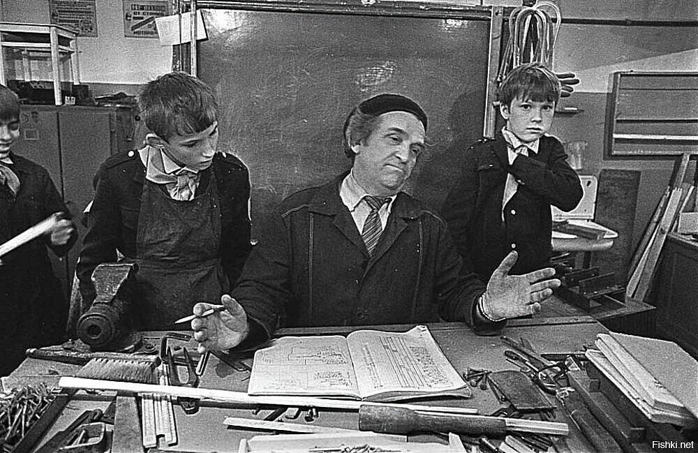 История из детства. Связанная с такими прекрасными учителями как трудовик.(фото из интернета для примера).Так вот у нас в классе где проводись уроки труда, висело радио. Но включалось оно соединением проводов. Ну Ванька и пошёл баловаться соединять и рассоединять. Трудовик(извините имя отчество его не помню уже).