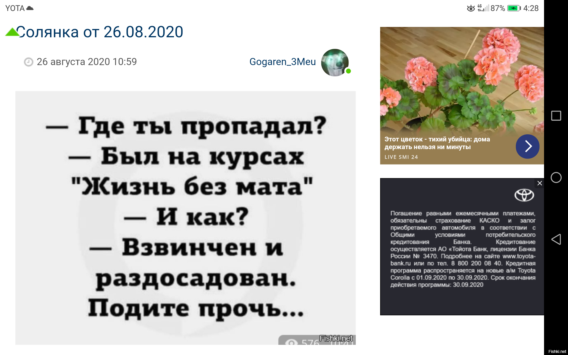 Нет у меня возможности, да и желания - сидеть всё свободное время в солянке и следить за тем, кто, когда и что постил.