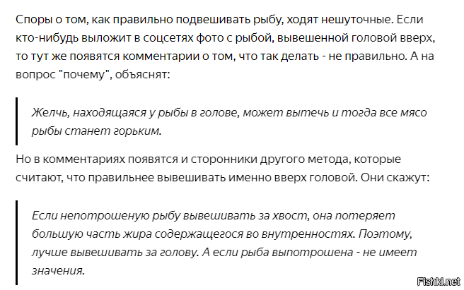если вешать за глаз,то вся горечь из головы стекает к хвосту,если вешать за хвост -никакой горечи не будет.Хотя это вечный спор в инете