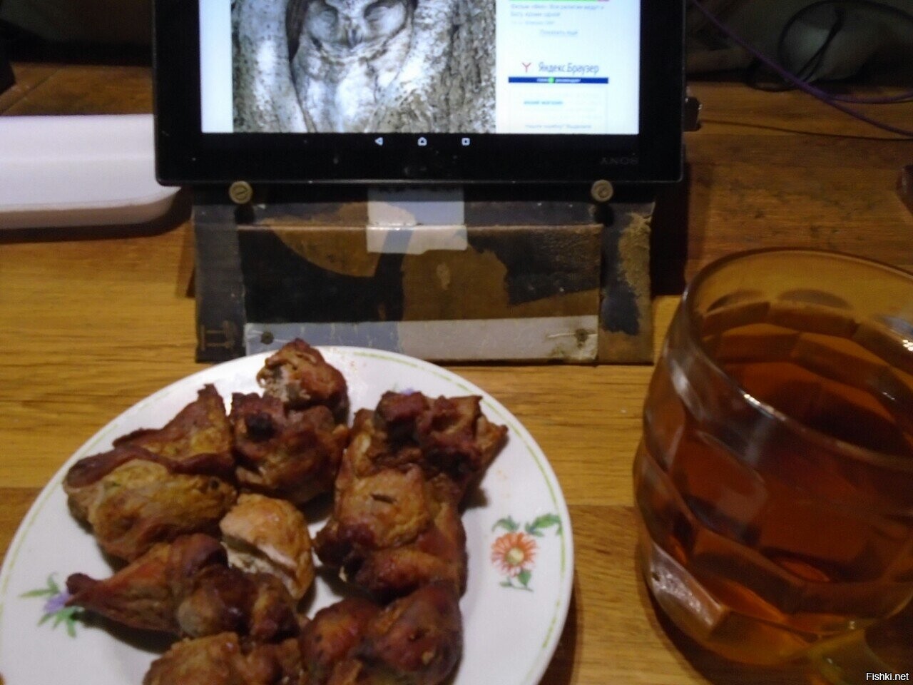 а то куриные крыльца с гриля водкой запивал,