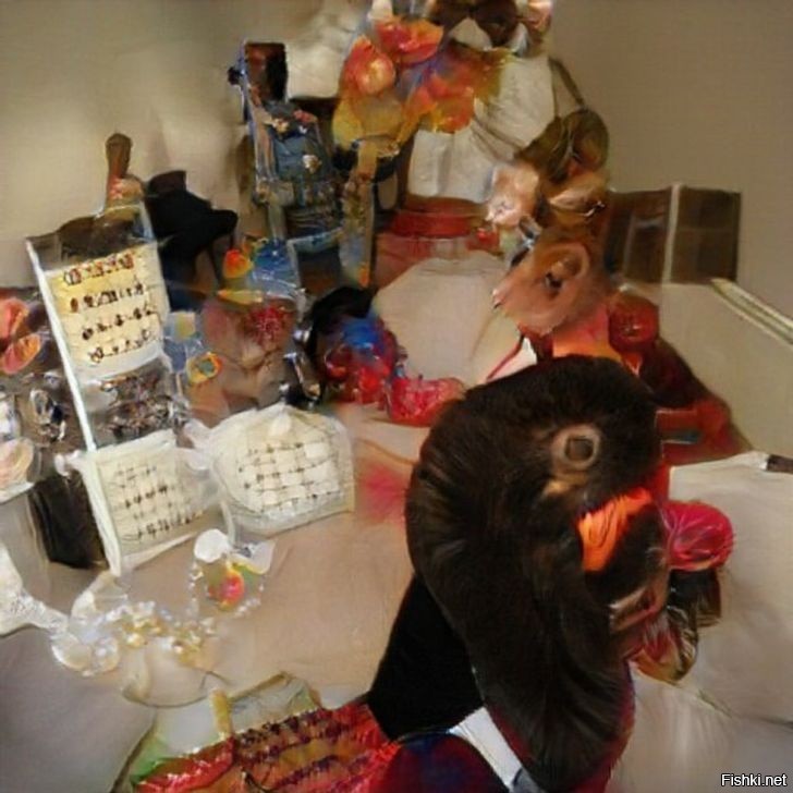 Вот выкладывают эту картинку (нейросеть, мол, зафигачила, ни одного предмета не опознать)... А ты с каждым разом видишь все больше и больше. И коллекцию значков, и свечи, и искусственные цветы, и тряпичных кукол,и обезьяну, сидящую справа. Все это на непокрытой кровати.