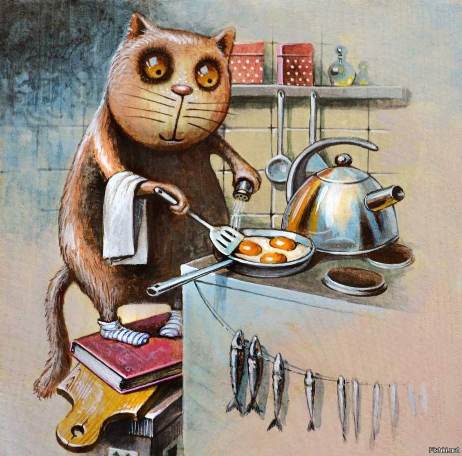 Давно это было, еще в конце 60-х,Коммуналка 6 комнат. В одной жила Антонина, Бабуля - Ленина помнила и был у нее кот , и ел этот кот только особо приготовленную на пару рыбку.Какую не помню. Сосед был Василий. Он питался исключительно макаронами, ну и выпить любил конечно. И вот Антонине надо было уехать на месяц или больше куда то, а с котом не получалось. Поговорила она с Васей, оставила ему рецепт приготовления рыбки, 30 рублей _ по тем временам очень приличная сумма и укатила. А что Василий- праздник по всем правилам , гуднул так что вся квартира приняла участие , кто в выпивке, кто потом в уборке.Пришел с работы, кот орет Вася макарошки отварил себе ну и коту тоже. Кот орал дня три,после стал есть и ел все что ел Вася, ну может только винишко не пил.Приехала Антонина. Кот отожрался на макаронах . Шерсть и морда лоснится.Хозяйка довольна -Васе 3 рубля, а сама решила бутербродик съесть с дороги, сидит масло намазывает. Кот на это дело посмотрел и как прыгнет, и с бутером в зубах скрылся. Не знаю комила ли она потом кота рыбой ) , ну как то так ...